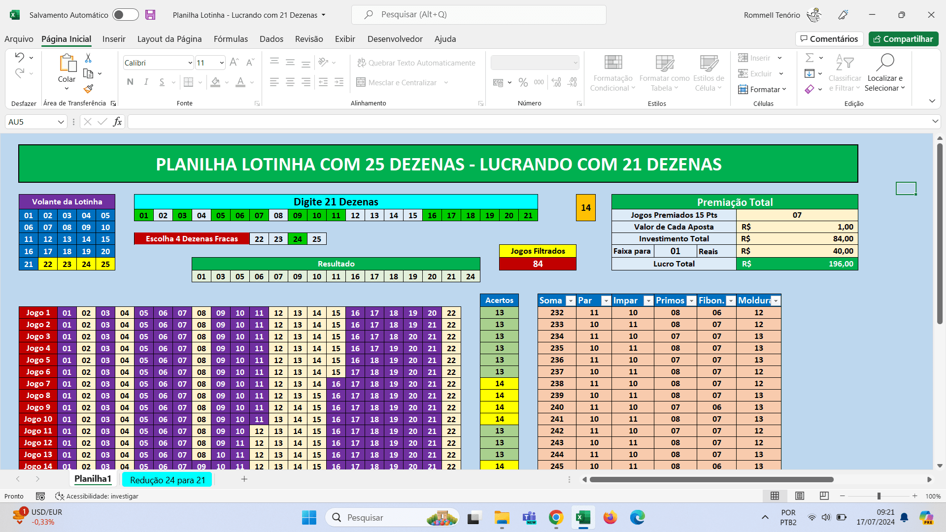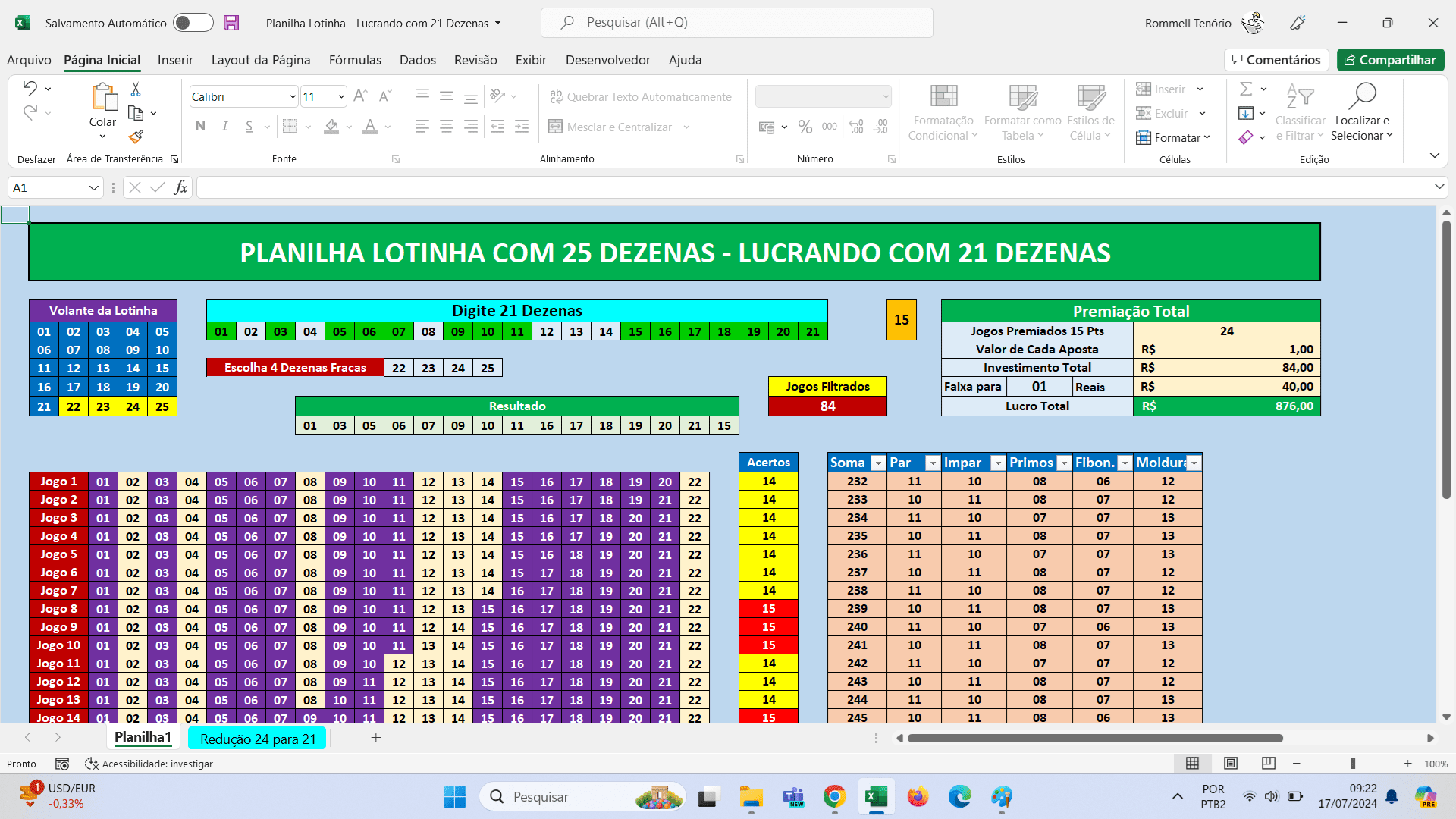 Planilha Lotinha – Lucrando em Jogos de 21 Dezenas