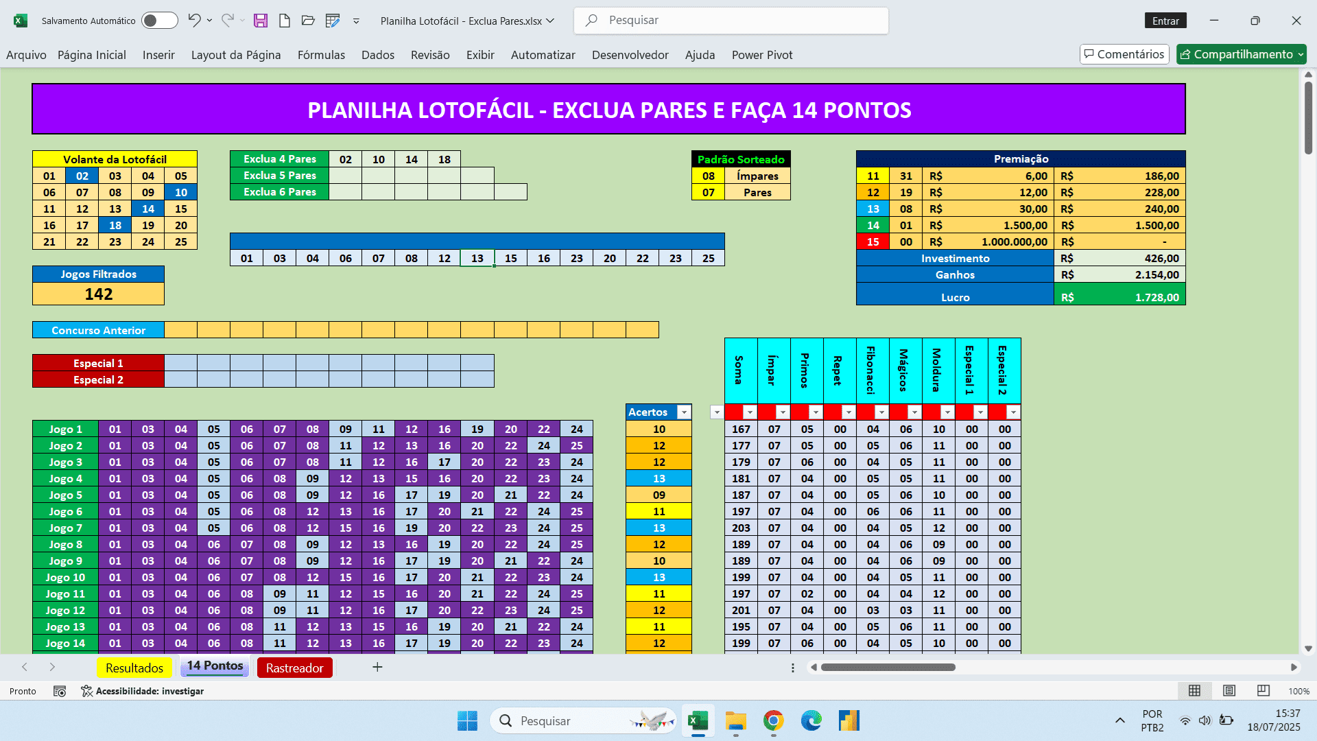 Planilha Lotofácil – Exclua Dezenas Pares e Faça 14 Pontos