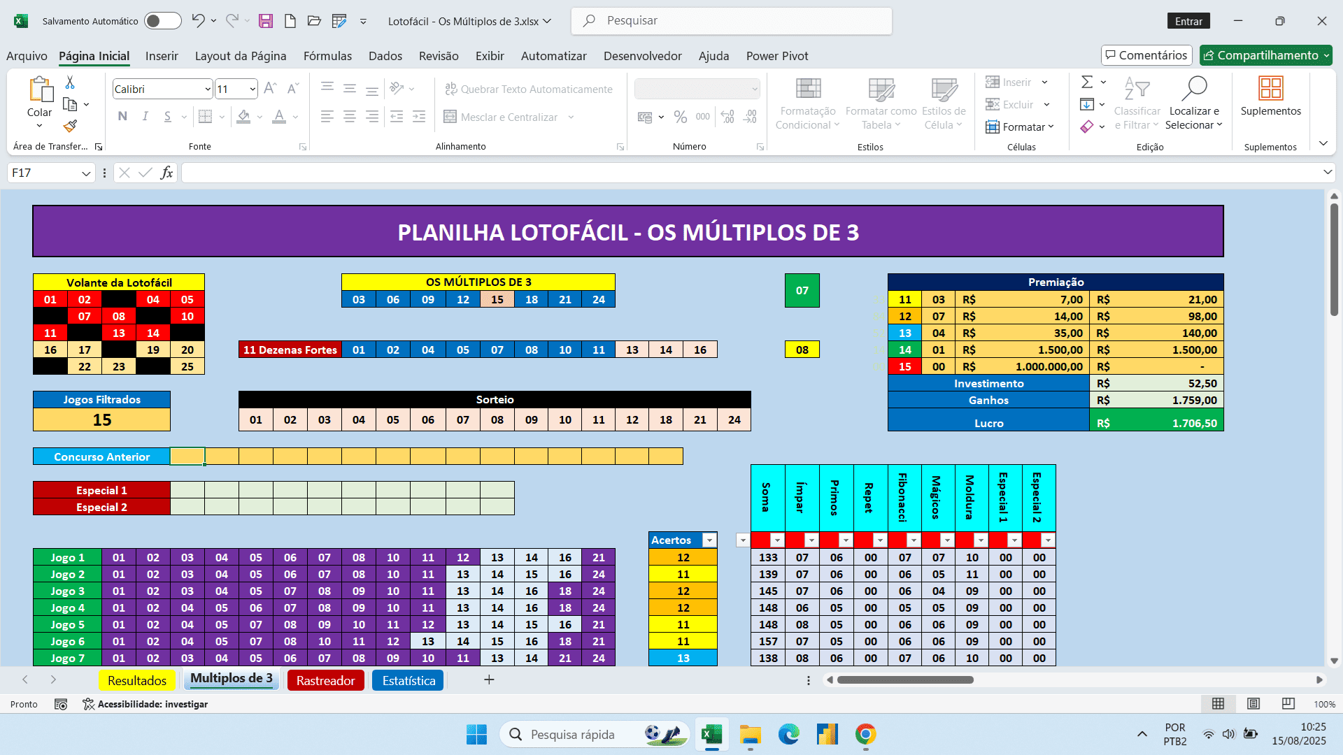 Planilha Lotofácil – Os Múltiplos de 3 Combinados